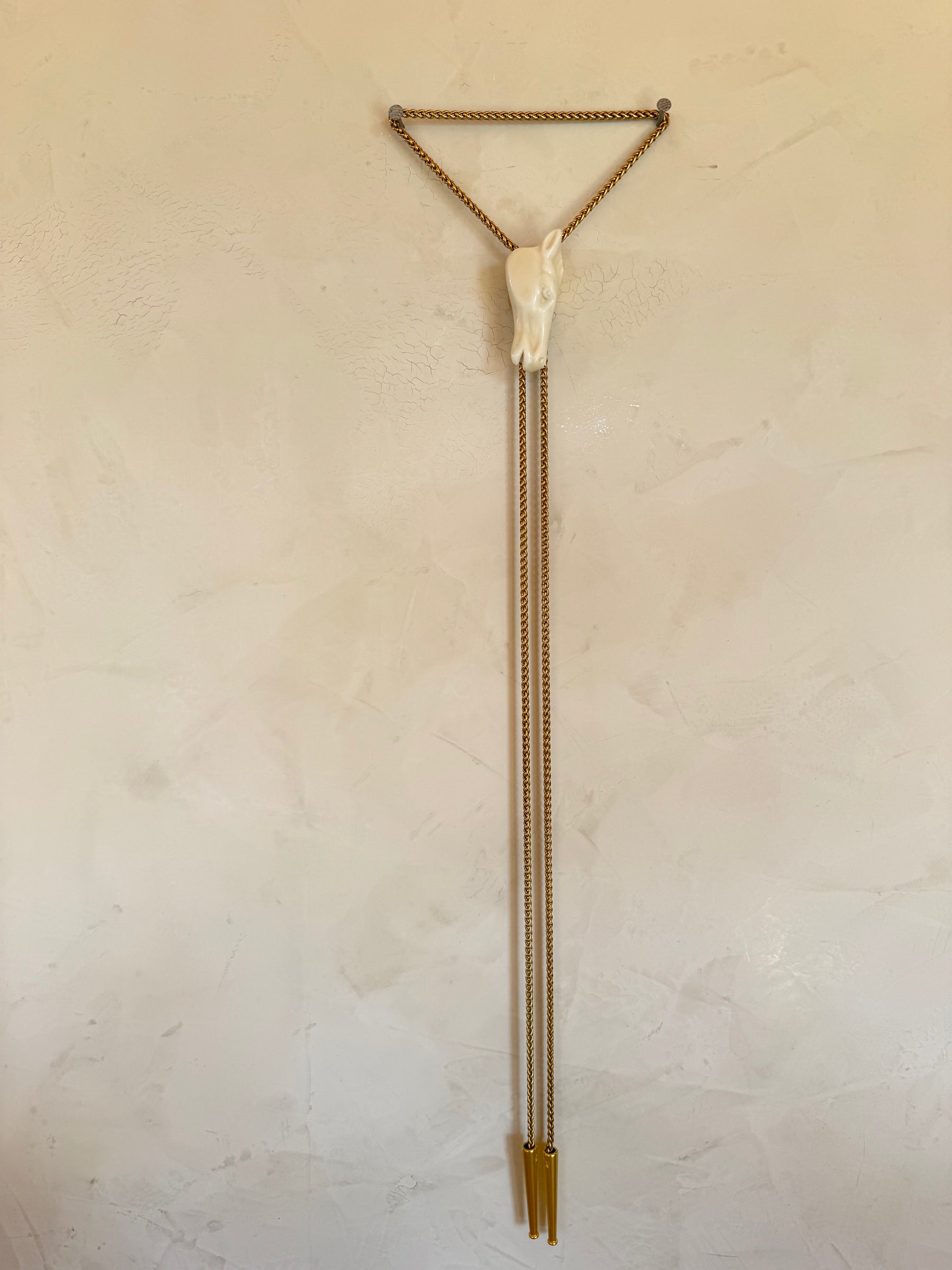 Porcelain Horse Bolo on a gold chain with gold tips and a beautiful gold designer back
