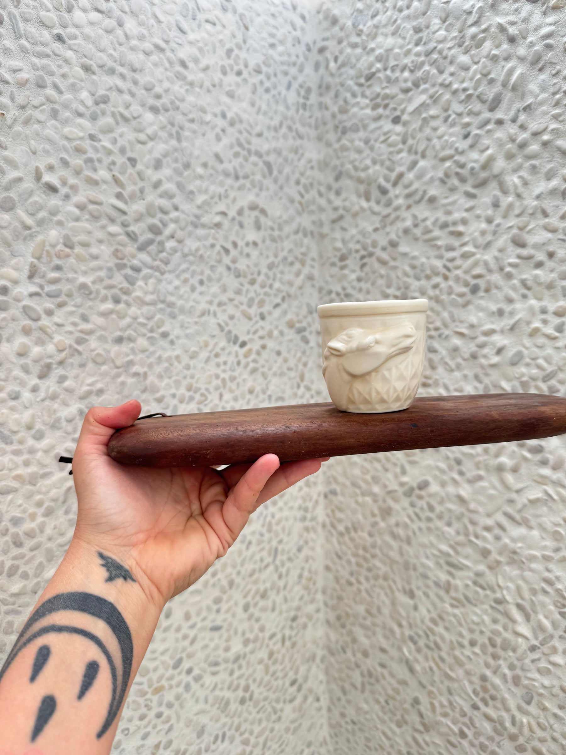 Porcelain horse tonic cup in satin bone glaze color. Has a warm bone color with a slightly matte finish with enough shine to fully seal and protect from coffee and wine stains