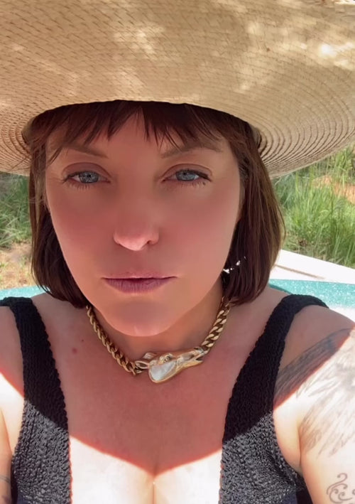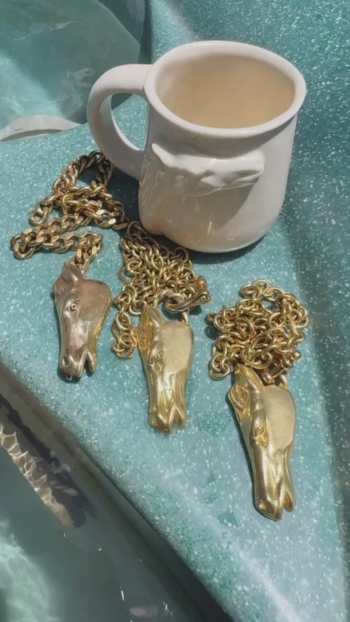 Heavy bronze horse on solid brass curb chain adjustable length from 15 to 18 inches