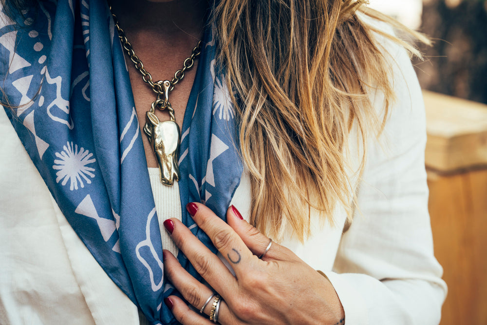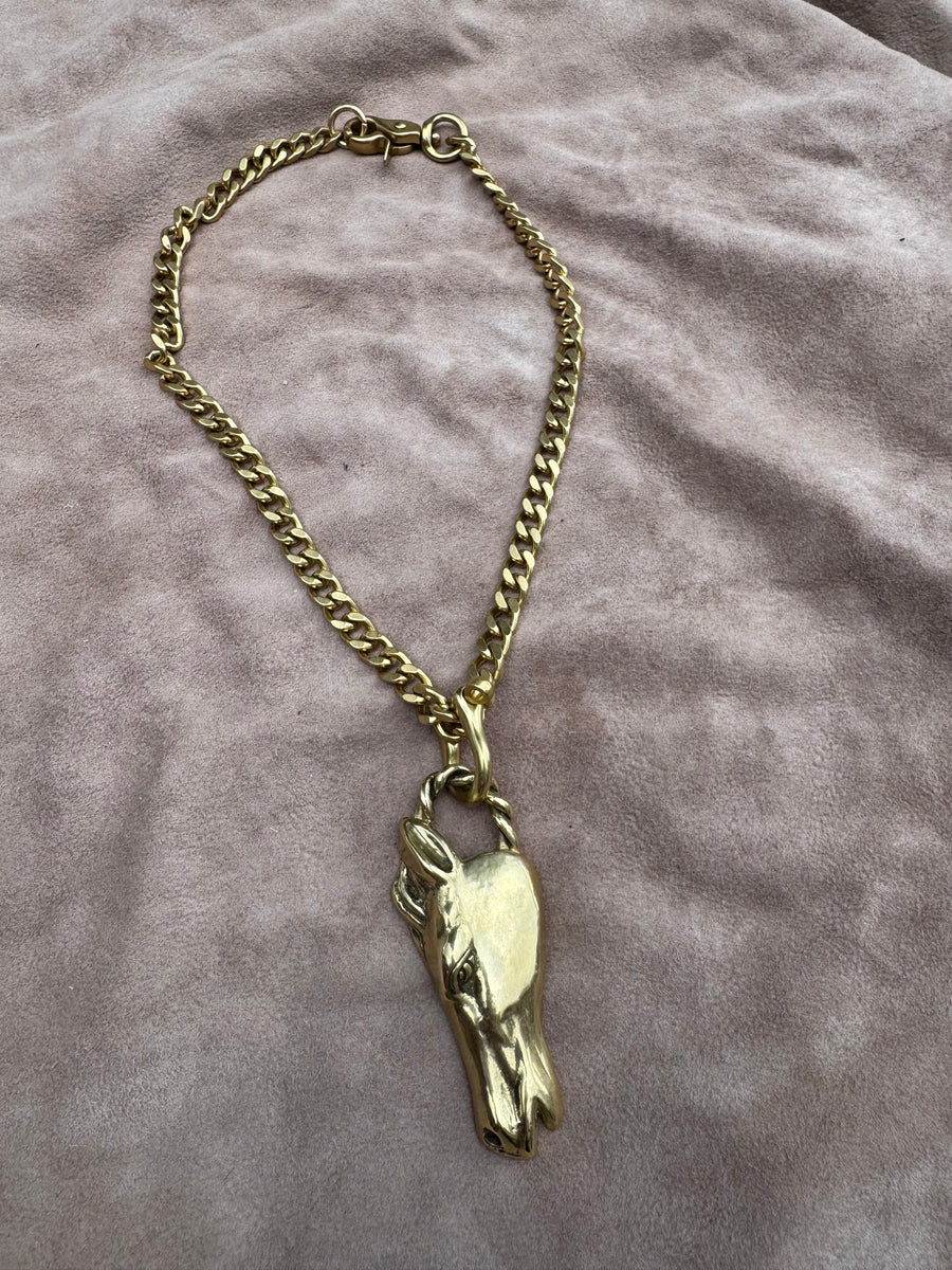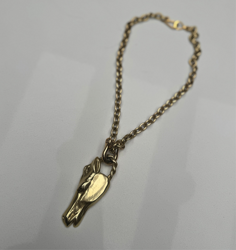 Beautiful sterling silver Italian curb chain and heavy sterling silver horse with turquoise eye detail.