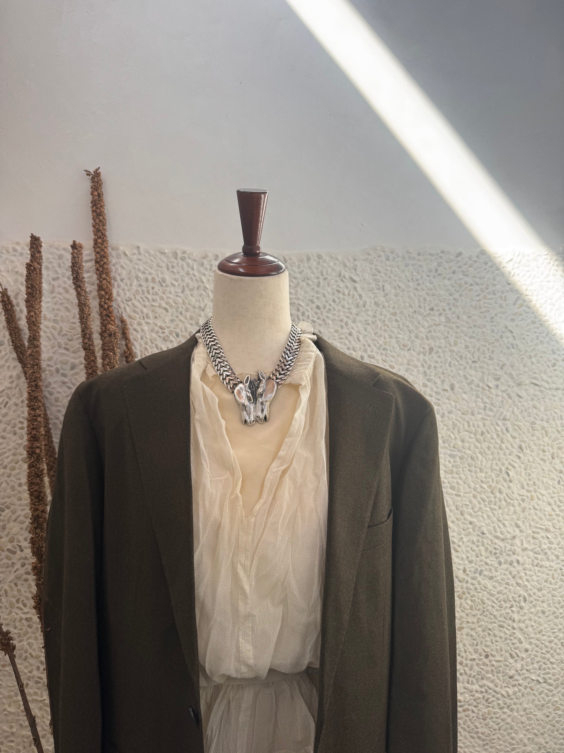 Stunning solid vintage sterling silver chain with heavy sterling two horse center about 16”